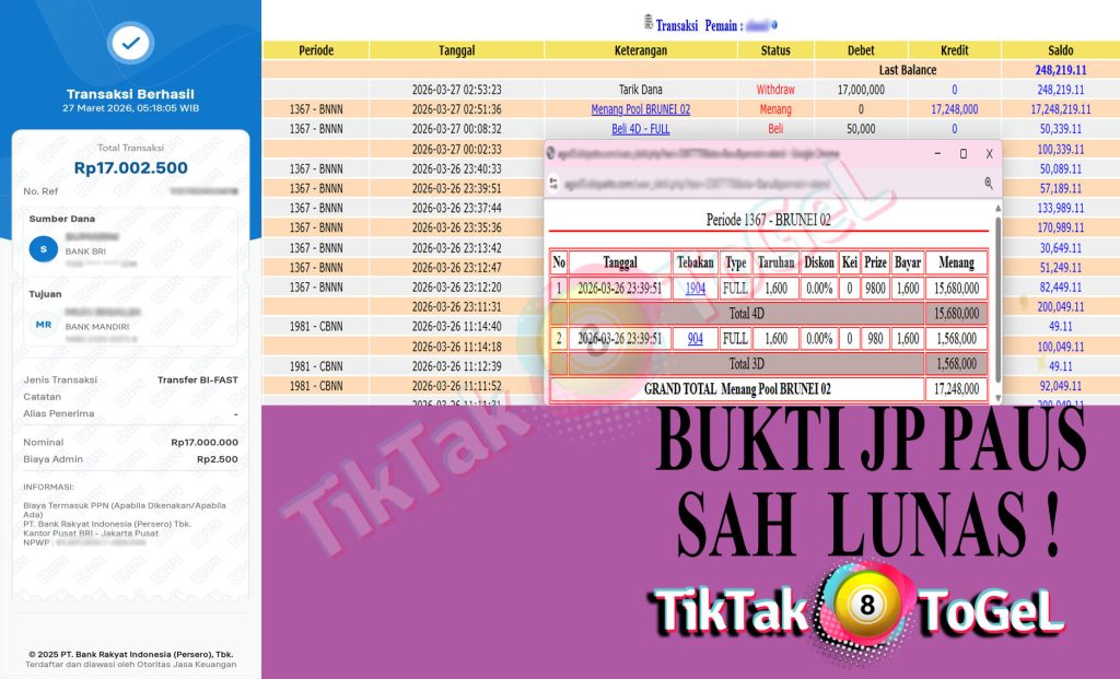 berapapun kemenangan pasti akan kami bayar lunas hanya dalam hitungan menit saja.