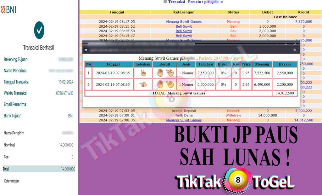 Jumlah Kemenangan : 63,360,000