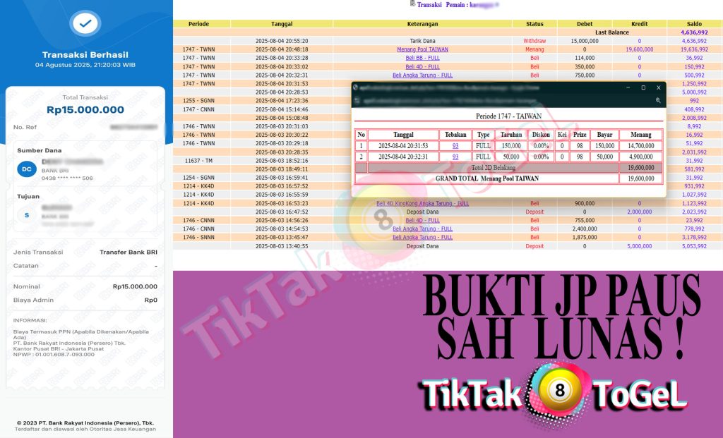 berapapun kemenangan pasti akan kami bayar lunas hanya dalam hitungan menit saja.