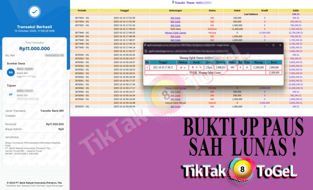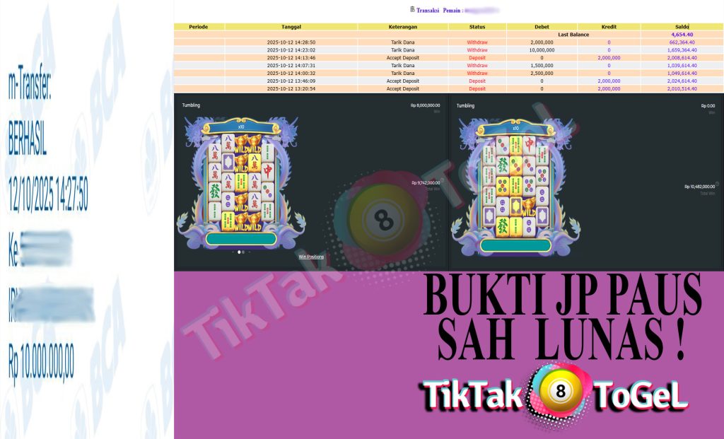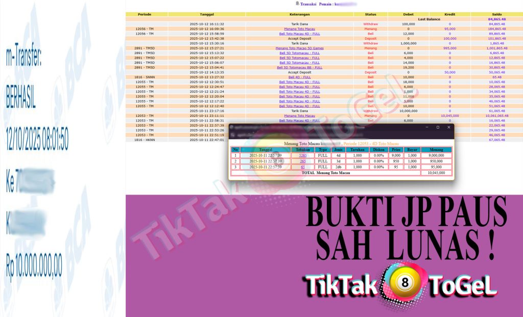 Bukti JP Paus User Kuxxxxxx Pada Pasaran Toto Macau 12 Oktober 2025
