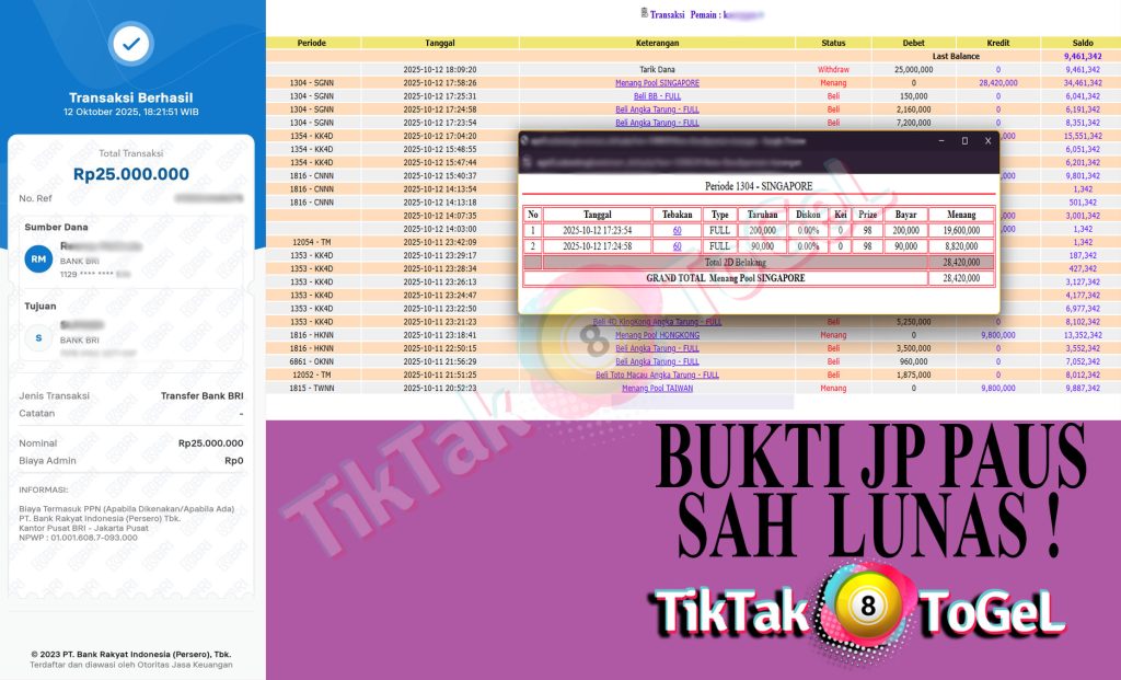 Bukti JP Paus User Kaxxxxxx Pada Pasaran SINGAPORE 12 Oktober 2025
