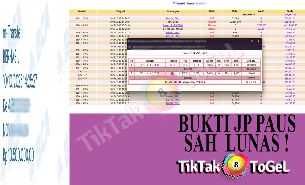 Bukti JP Paus User Noxxxxx Pada Pasaran SYDNEY 10 Oktober 2025