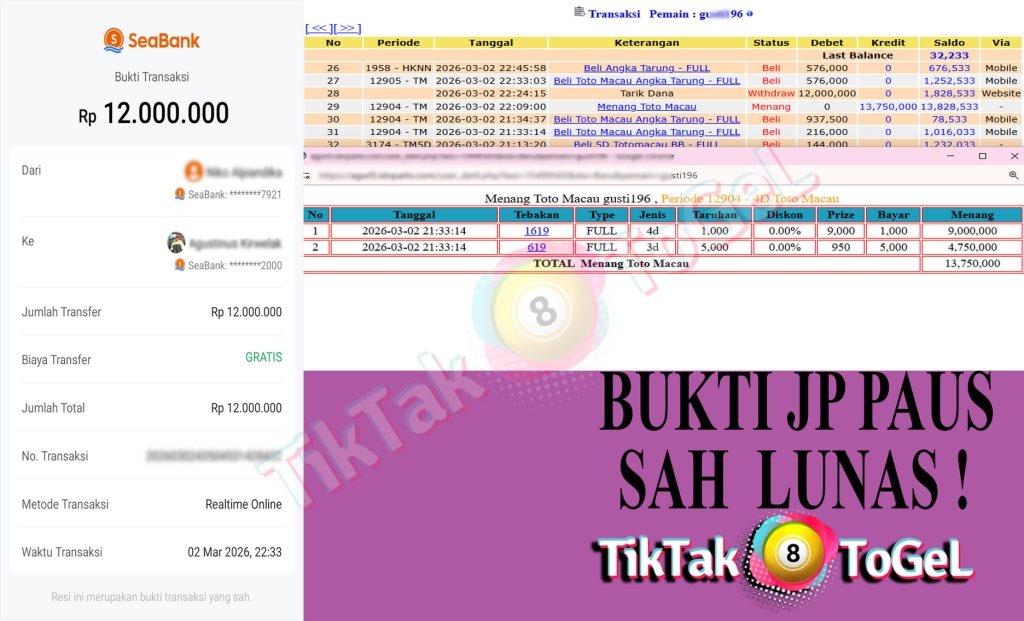 Bukti JP Paus User gxxxi196 Pada Togel ToTo Macau tanggal 02 Maret 2026