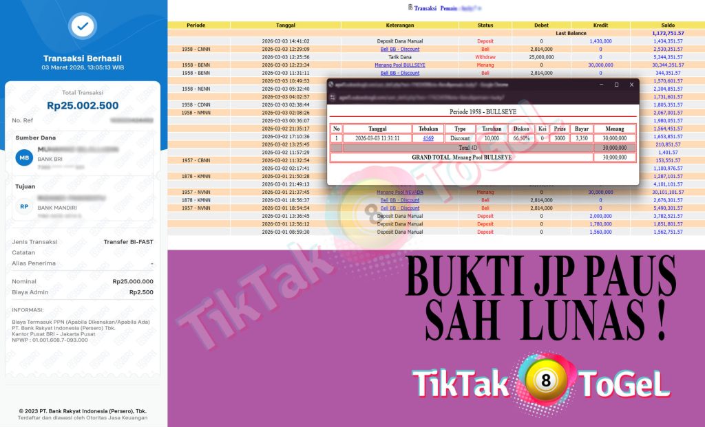 Bukti JP Paus User Luxxx Pada Pasaran BULLSEYE 03 Maret 2026