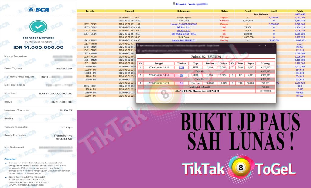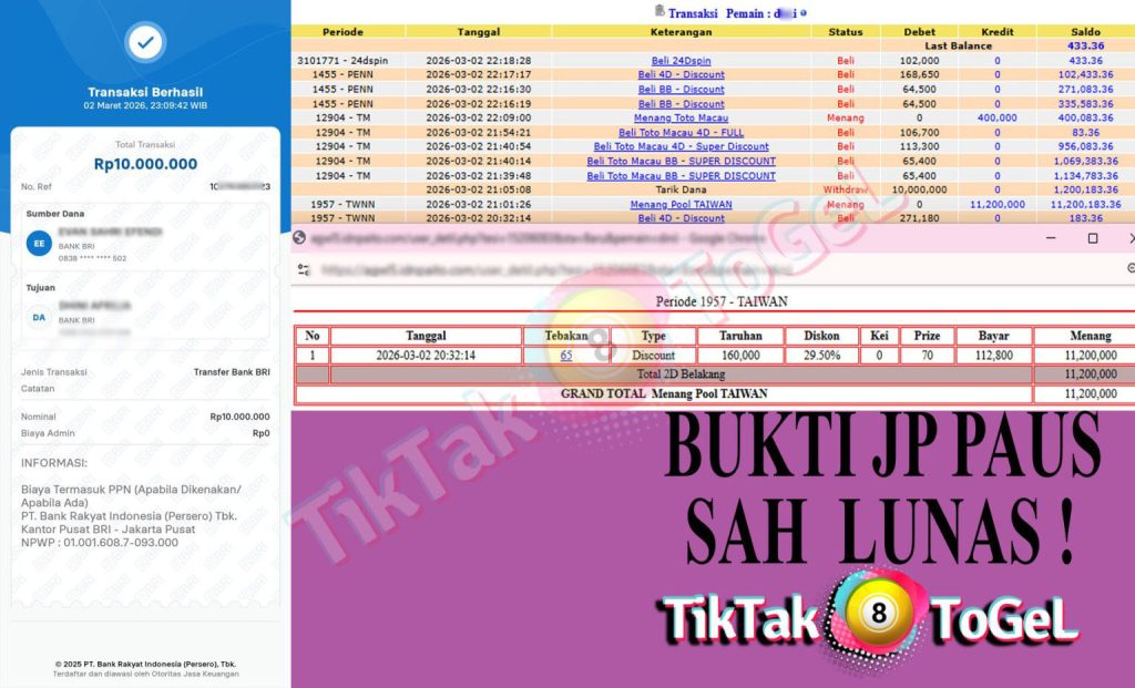 Bukti JP Paus User dxxxi Pada Togel Taiwan tanggal 02 Maret 2026