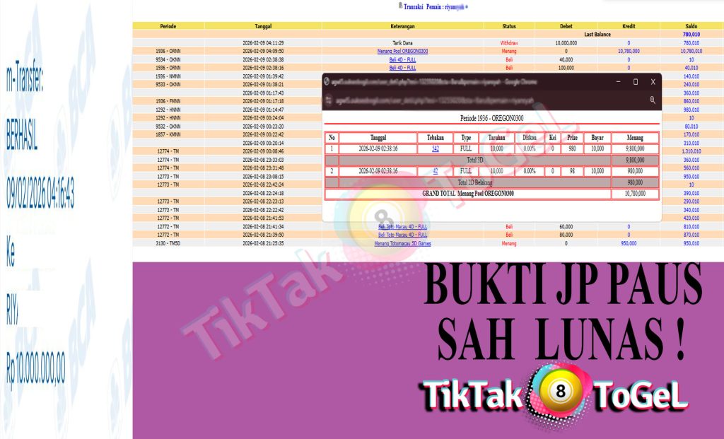 Jumlah Kemenangan : 16,290,710