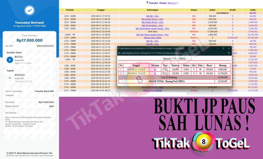 berapapun kemenangan pasti akan kami bayar lunas hanya dalam hitungan menit saja.