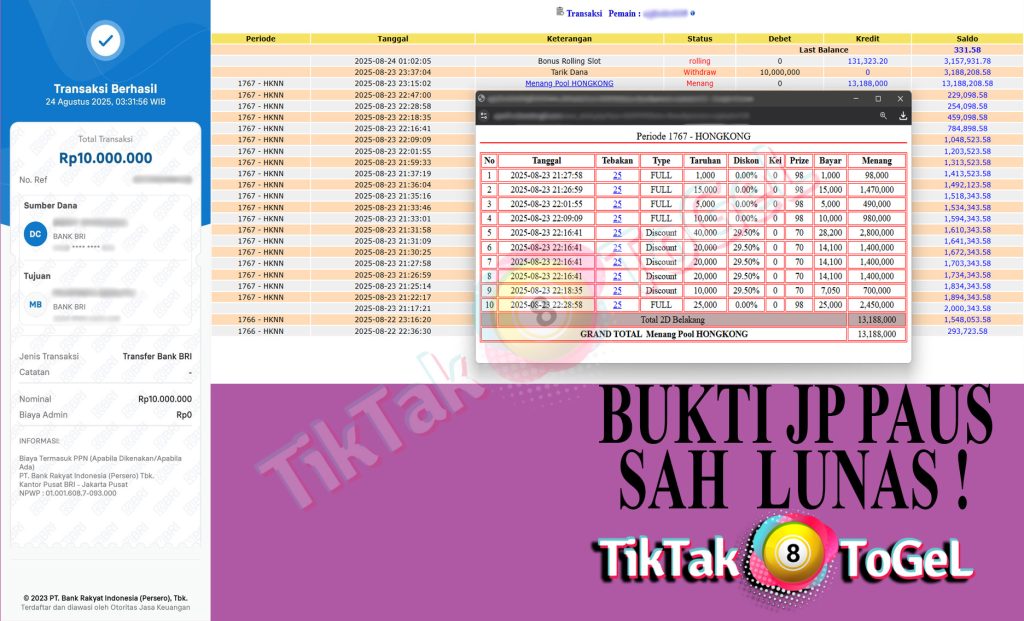 berapapun kemenangan pasti akan kami bayar lunas hanya dalam hitungan menit saja.
