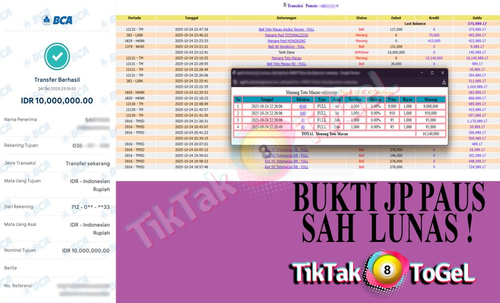 Bukti JP Paus User Suxxxxx Pada Pasaran Toto Macau 24 Oktober 2025