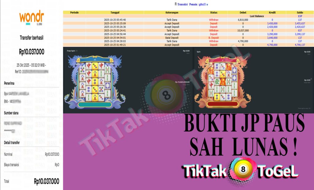 Bukti JP Paus User Gixxxxx Pada Slot Mahjong Wins 3 – Black Scatter 25 Oktober 2025